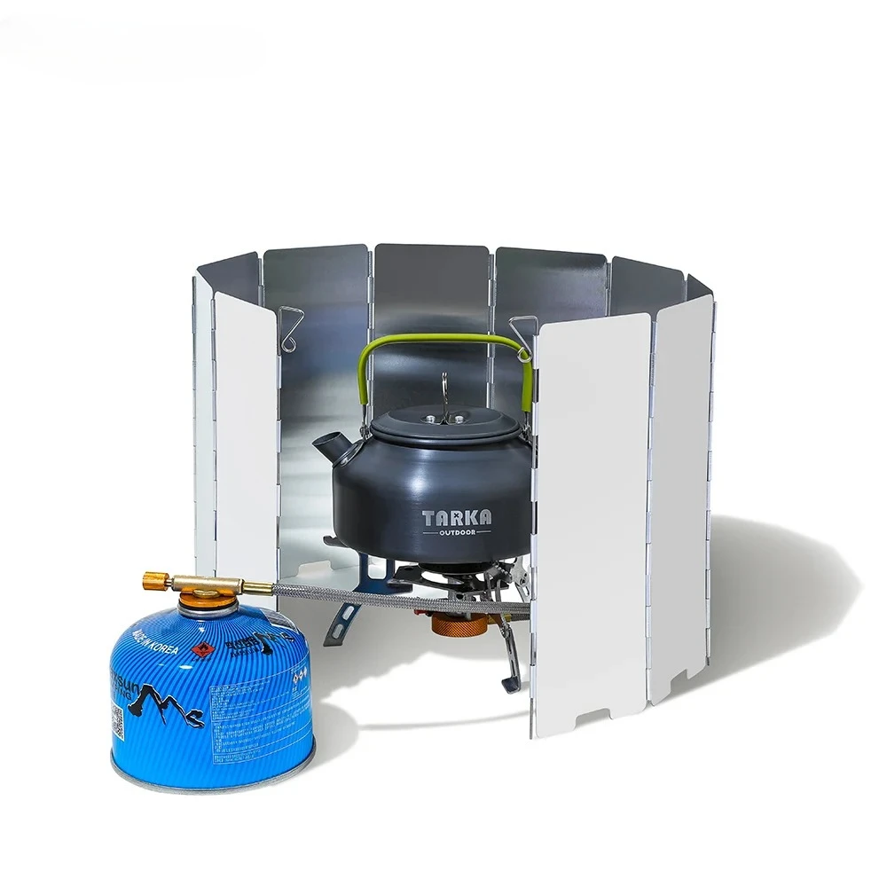 This camping stove windshield is designed to block wind and improve cooking efficiency.