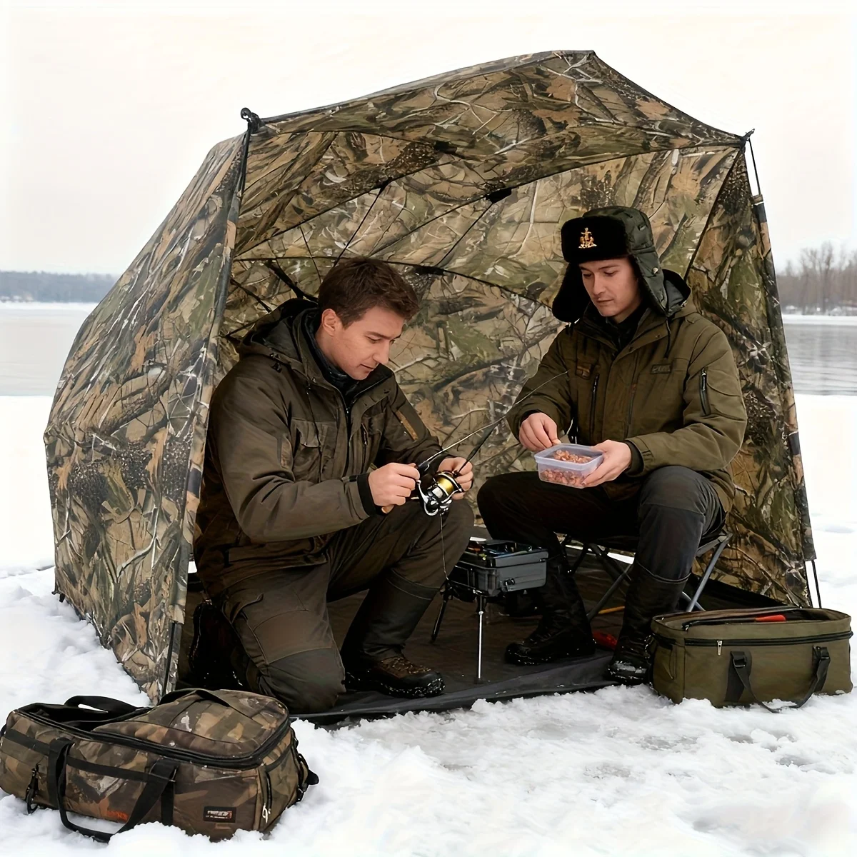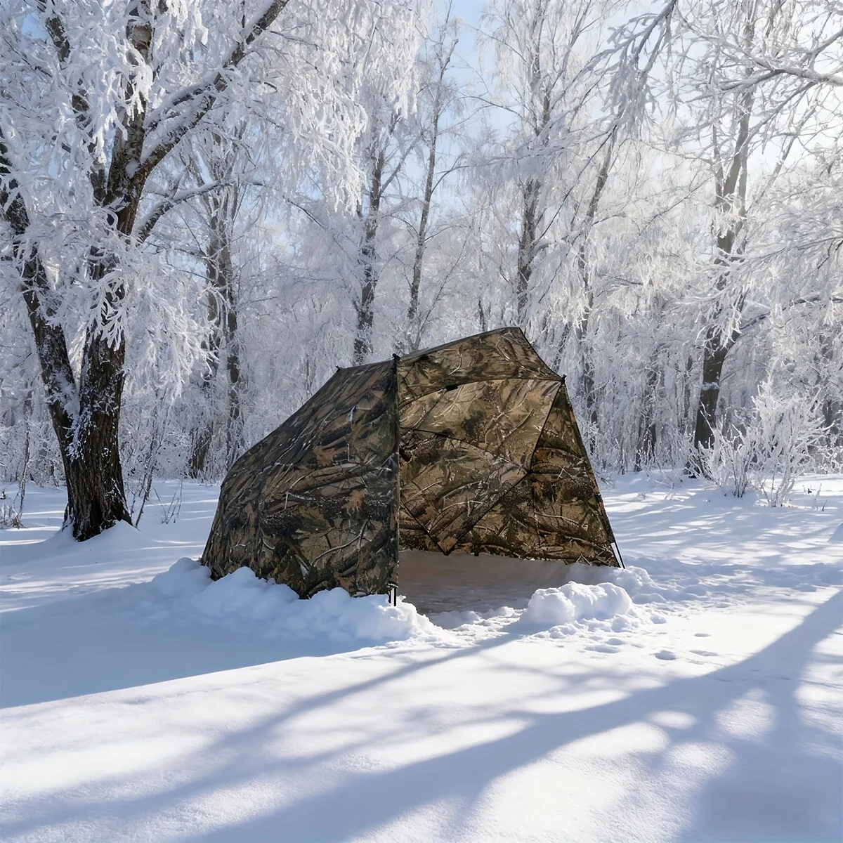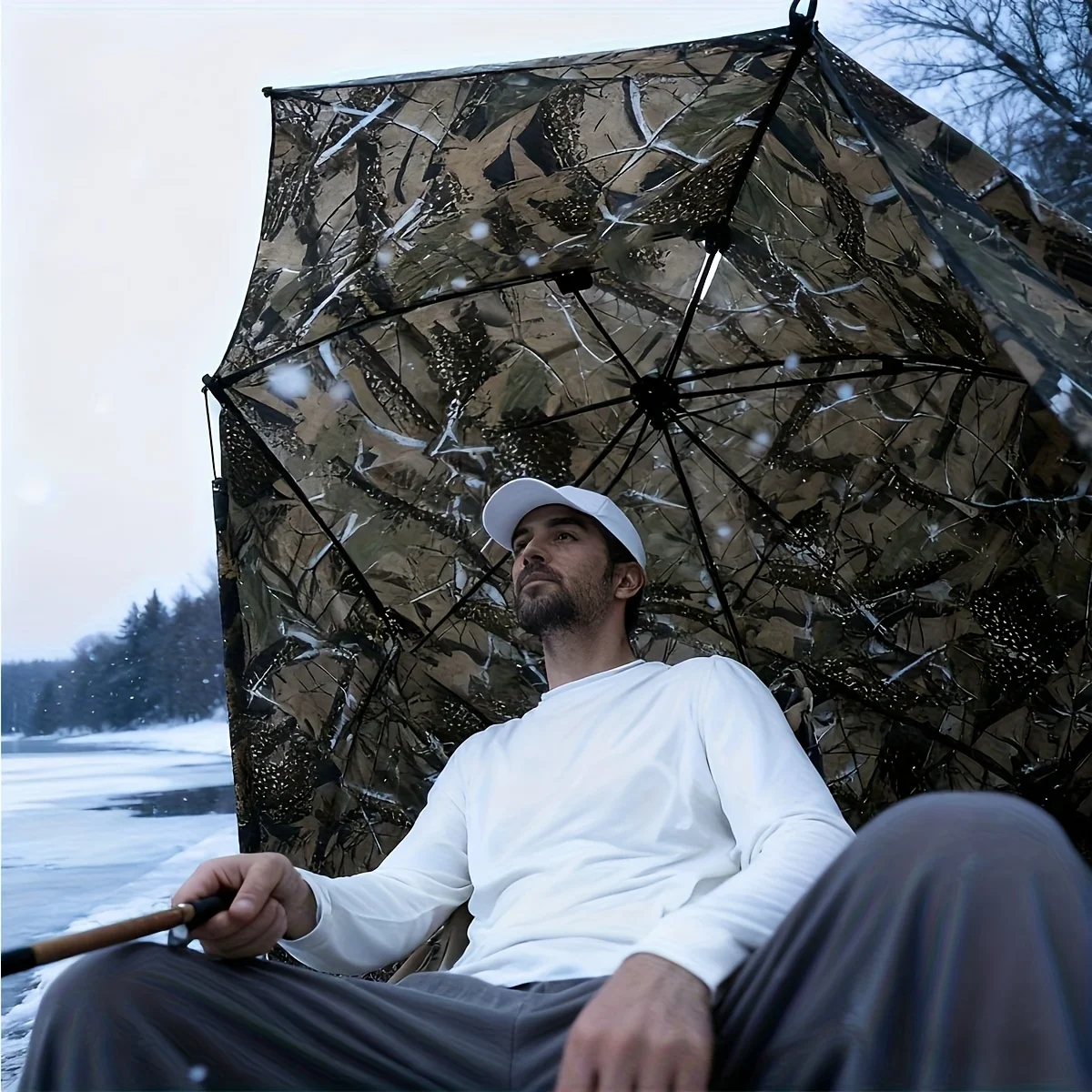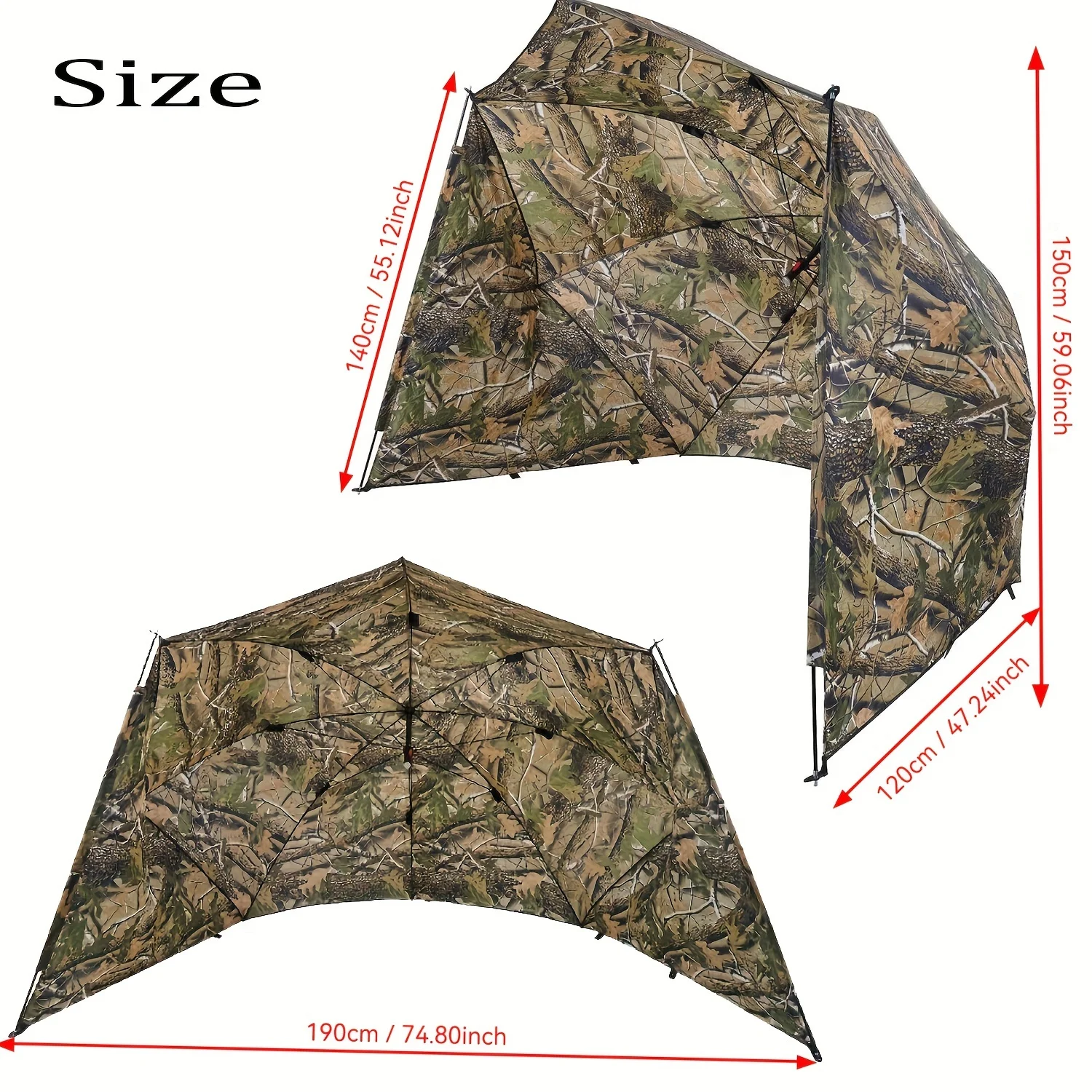Stay protected and concealed outdoors with this camouflage fishing & hunting umbrella shelter. Designed to block sun and rain, it features a durable, weather-resistant canopy and portable setup—perfect for fishing, hunting, camping, or tailgating. Lightweight, easy to carry, and built for all-day comfort in any conditions.