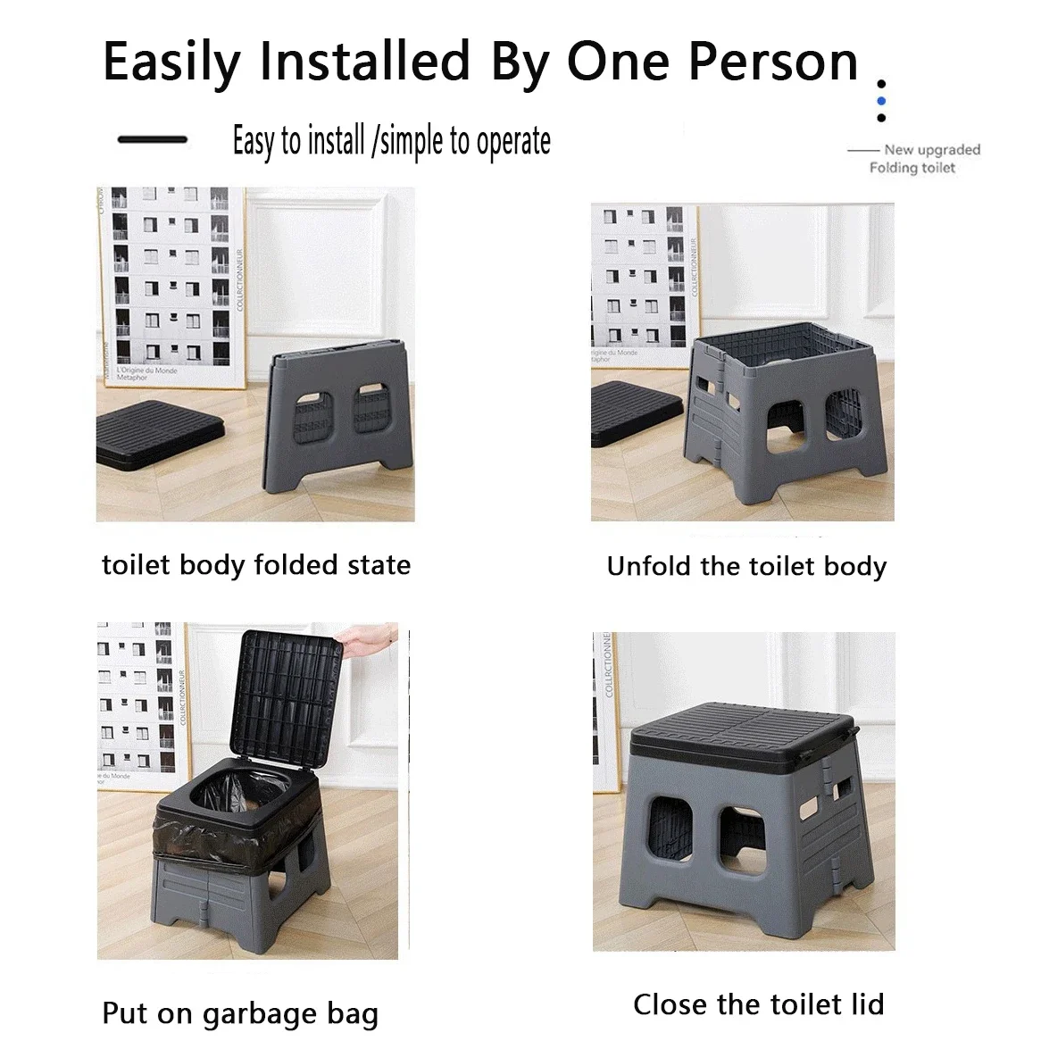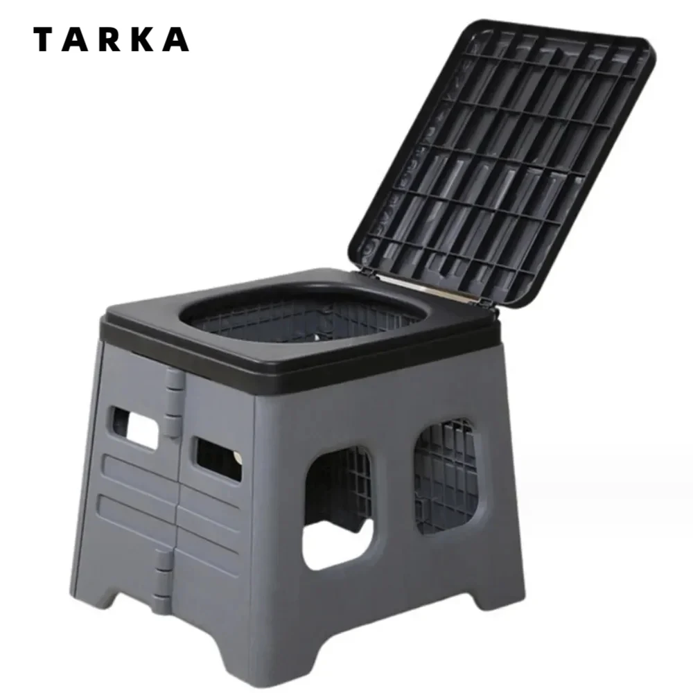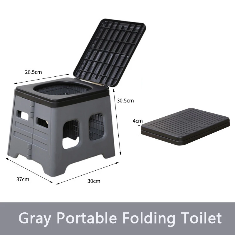 Portable folding camping toilet with sturdy seat and bucket design, perfect for outdoor travel, car emergencies, camping, hiking, and road trips. Lightweight, space-saving, and multifunctional—use as an emergency toilet, trash can, or storage container anywhere you go.